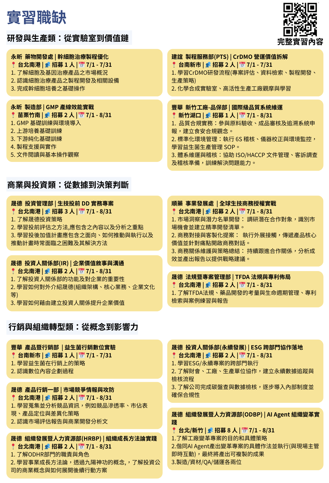多元公司單位實習機會